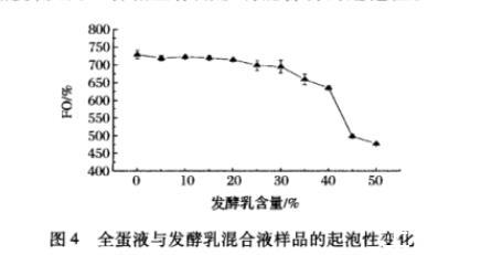 圖4全蛋液與發酵乳混合液樣品的起泡性變化