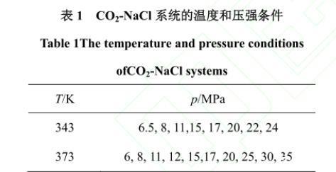 表1 CO2-NaCl系統(tǒng)的溫度和壓強條件