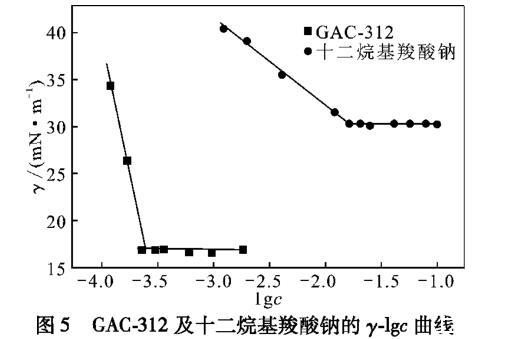 圖5 GAC-312及十二烷基羧酸鈉的γ-lgc曲線