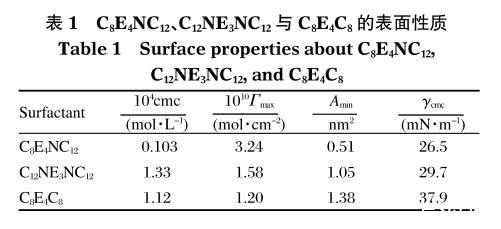 表1 C8E4NC12、C12NE3NC12與C8E4C8的表面性質