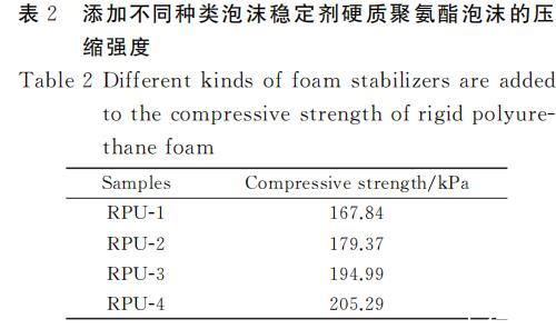 表2添加不同種類泡沫穩定劑硬質聚氨酯泡沫的壓縮強度