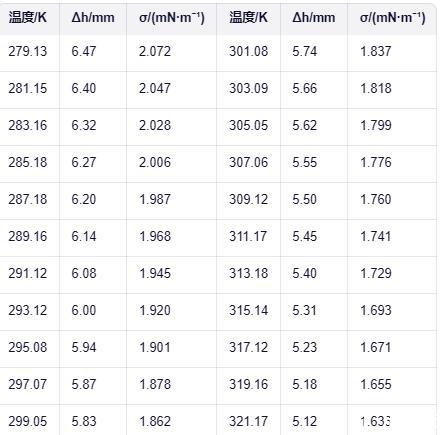 > 表面張力儀系統測定:溫度范圍內甲基九氟丁醚的液相密度與表面張力