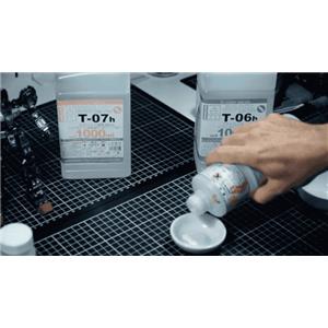 等待EX-01徹底干透后我們就可以得到一個光滑平整的平面。這層平面具有疏水特性,再使用水性的熒光漆的時候就可以擴大熒光漆的表面張力效果。